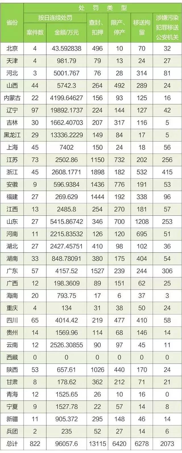 環保部公布:各省2017年1-9月環保法處罰明細
