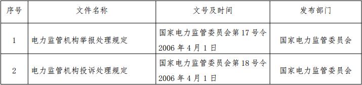 根據(jù)投訴舉報處理工作實際情況,并考慮到適用主體、調(diào)整對象均發(fā)生了變化,現(xiàn)決定宣布失效《電力監(jiān)管機構舉報處理規(guī)定》(國家電力監(jiān)管委員會令第17號)、《電力監(jiān)管機構投訴處理規(guī)定》(國家電力監(jiān)管委員會令第18號)。