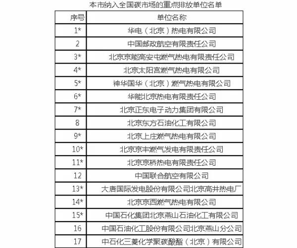 北京市納入全國(guó)碳市場(chǎng)的重點(diǎn)排放單位名單