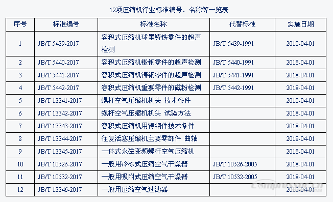 國家壓標委發(fā)布壓縮機行業(yè)5項國家標準和12項行業(yè)標準