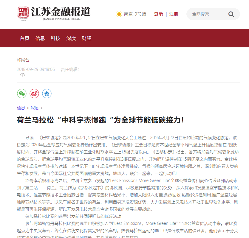 江南時報網:荷蘭馬拉松“中科宇杰慢跑“為全球節(jié)能低碳接力!
