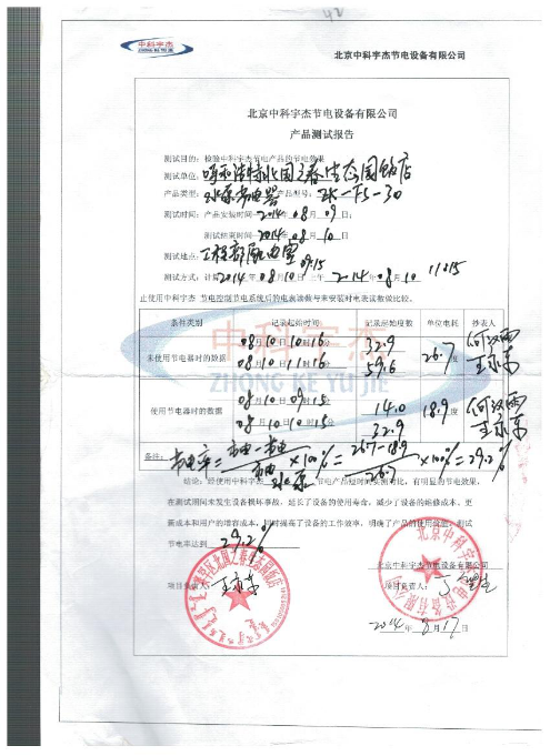 工程竣工后,中科宇杰人員對現場進行回訪,節電達到預期的29.2%,效果明顯。北國之春生態園對此節能效果十分滿意,表示將和北京中科宇杰展開節能合作,共同把生態環保理念傳承下去。